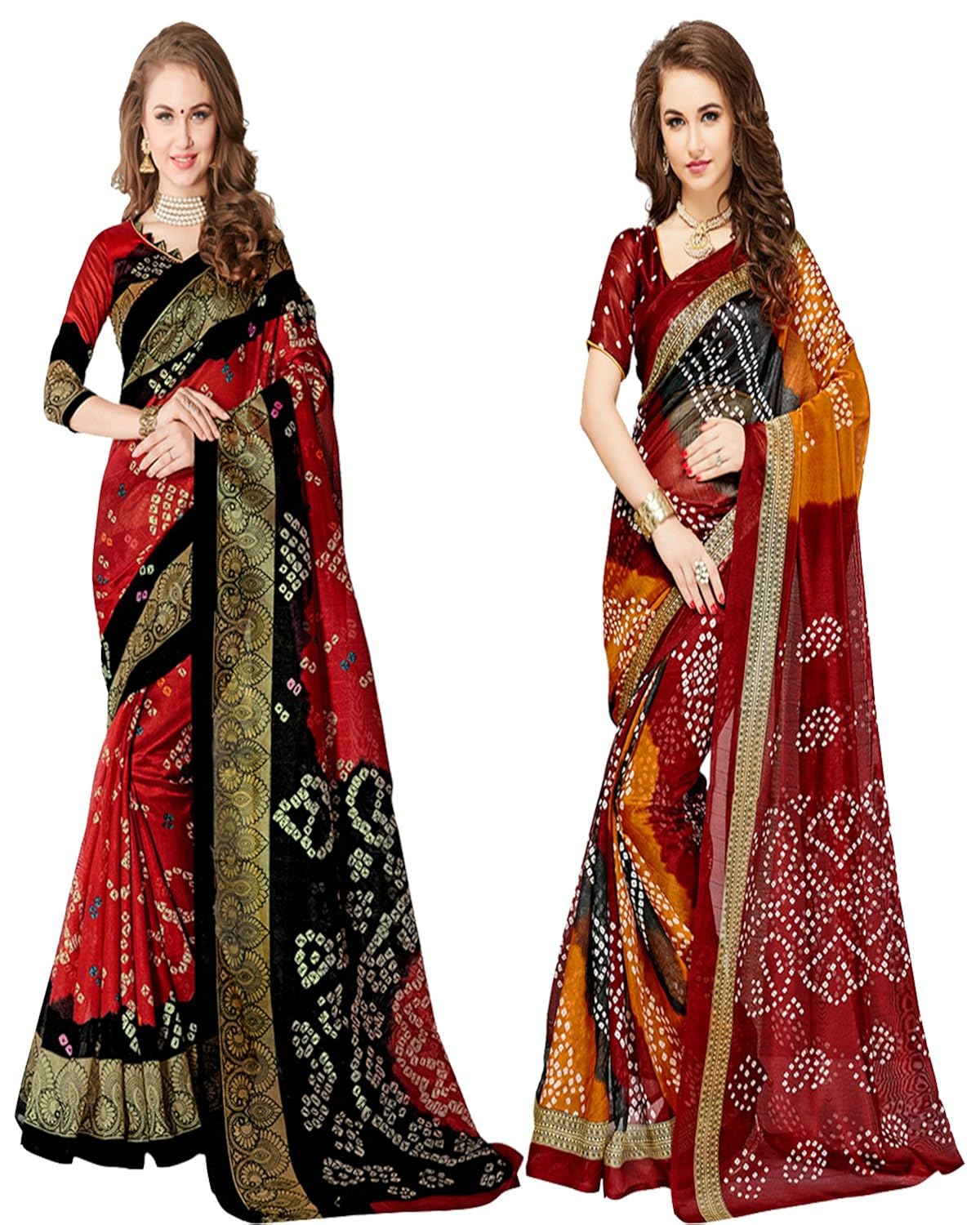 Best Saree 2018 | Glory Sarees Art Silk Saree With Blouse Piece (Pack of 2)(bandhani28&29_Red and Black_Free Size)|| Amazon India